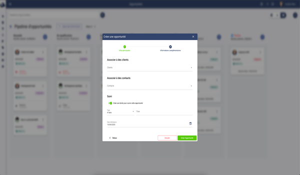 Mise en place d'un CRM avec plusieurs pipelines et statuts pour une gestion commerciale optimisée, permettant un suivi précis des opportunités et des interactions clients.